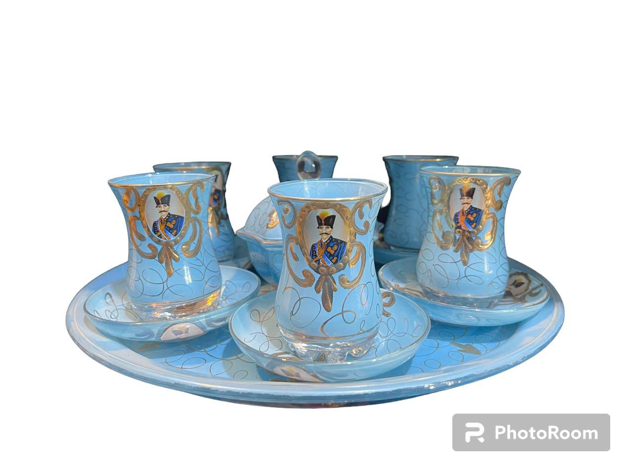 طقم سويدي الصنع مع صينية مطعم بالذهب شغل يدوي